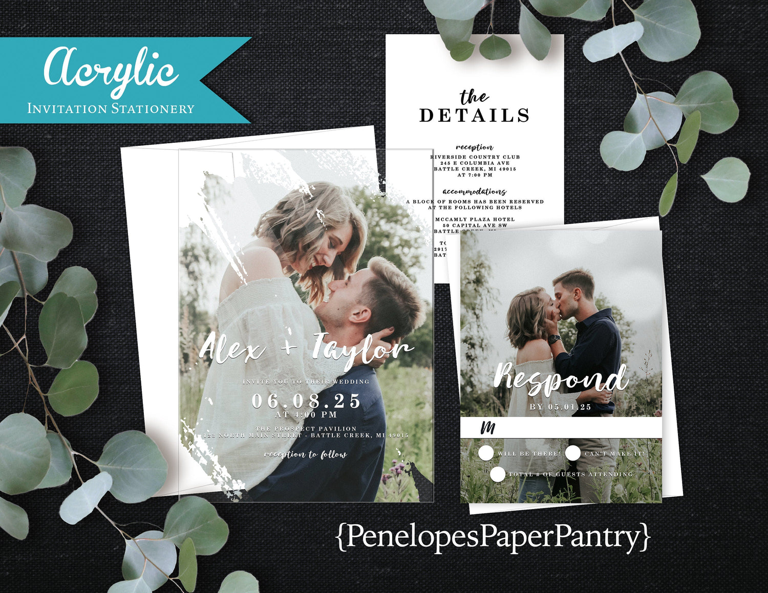 These unique invitations are printed on a clear acrylic material. The sturdy...