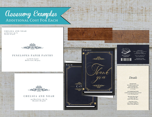 Love Story Navy and Gold Book Theme Traditional Wedding Invitation, Sets, or Suite