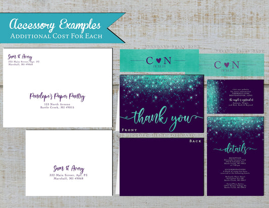 Teal Faux Glitter with Purple Background Traditional Wedding Invitation, Sets, or Suite