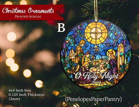 Unique Personalized Faux Stained Glass Christmas Tree Ornament 4 Inch Acrylic Circle Gold Hanging String Personalized Gift Grandparent Gift