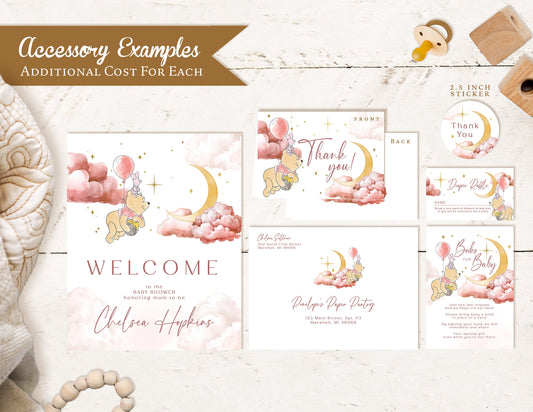 Personalized Baby Boy Winnie The Pooh Baby Shower Invitation with Moon Stars - Gold Foil Design Printed Invitations Envelopes Included