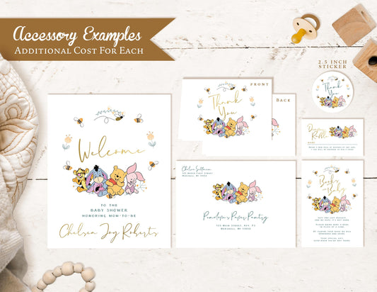 Winnie the Pooh Baby Shower Invitation – Gender Neutral Personalized Printed Invite with Baby Pooh Bear & Bees – Gold Foil Details & Envelope Included by Penelope’s Paper Pantry