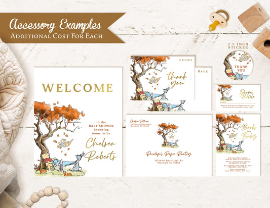 Winnie the Pooh Baby Shower Invitation – Fall Leaves & Gold Foil Printed Invite – Custom Design with One-on-One Personalization by Penelope’s Paper Pantry