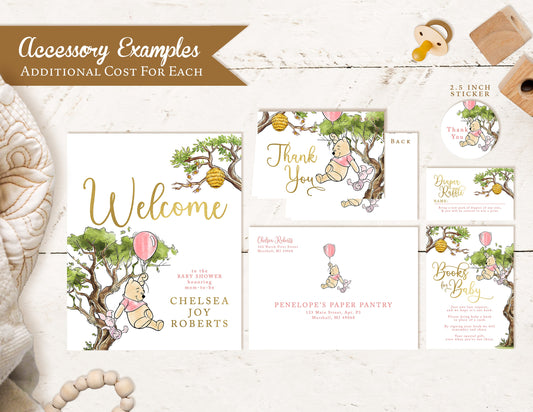 Winnie the Pooh Baby Girl Shower Invitation – Personalized with Piglet, Beehive & Pink Balloon – Gold Foil Calligraphy Printed Invite with Envelope & Custom Design by Penelope’s Paper Pantry