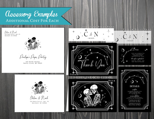 Halloween Wedding Invitation – Skeleton Couple Gothic Black & White – Personalized Spooky Printed Invite with Envelope Included