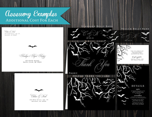 Personalized Halloween Wedding Invitation – Gothic Haunted Forest Design with Bats & Envelopes