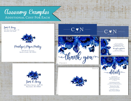 Elegant Sapphire Blue Floral Summer Wedding Invitation Personalized Royal Blue Cobalt Roses We Do Calligraphy Printed Invitation Envelopes