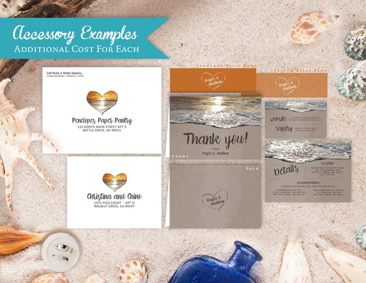 Romantic Sunset Beach Wedding Invitation Personalized Heart In The Sand Initial Tropical Destination Hawaii Printed Invitation With Envelope
