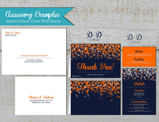 Orange Bokeh with Navy Blue Background Traditional Wedding Invitation, Sets, or Suite