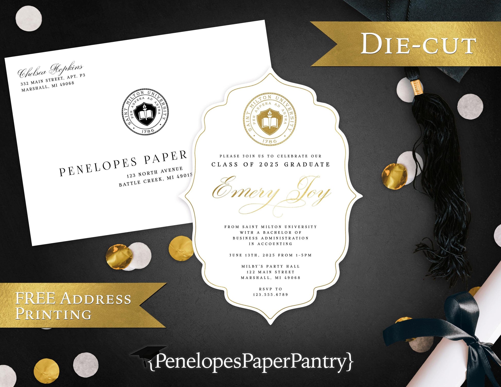 Die Cut Bracket University Seal Graduation Open House or Ceremony Invitation