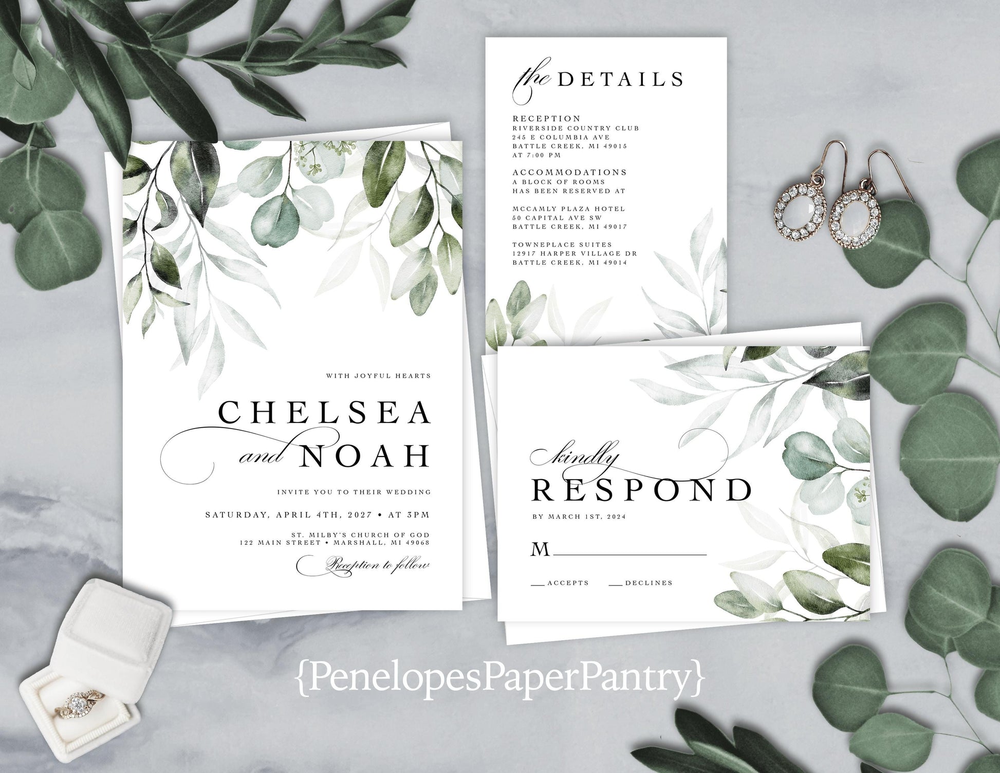 Elegant Greenery Summer Wedding Invitation Personalized Botanical Vines Leaves Foliage Calligraphy Printed Invitation Envelope Included Chic