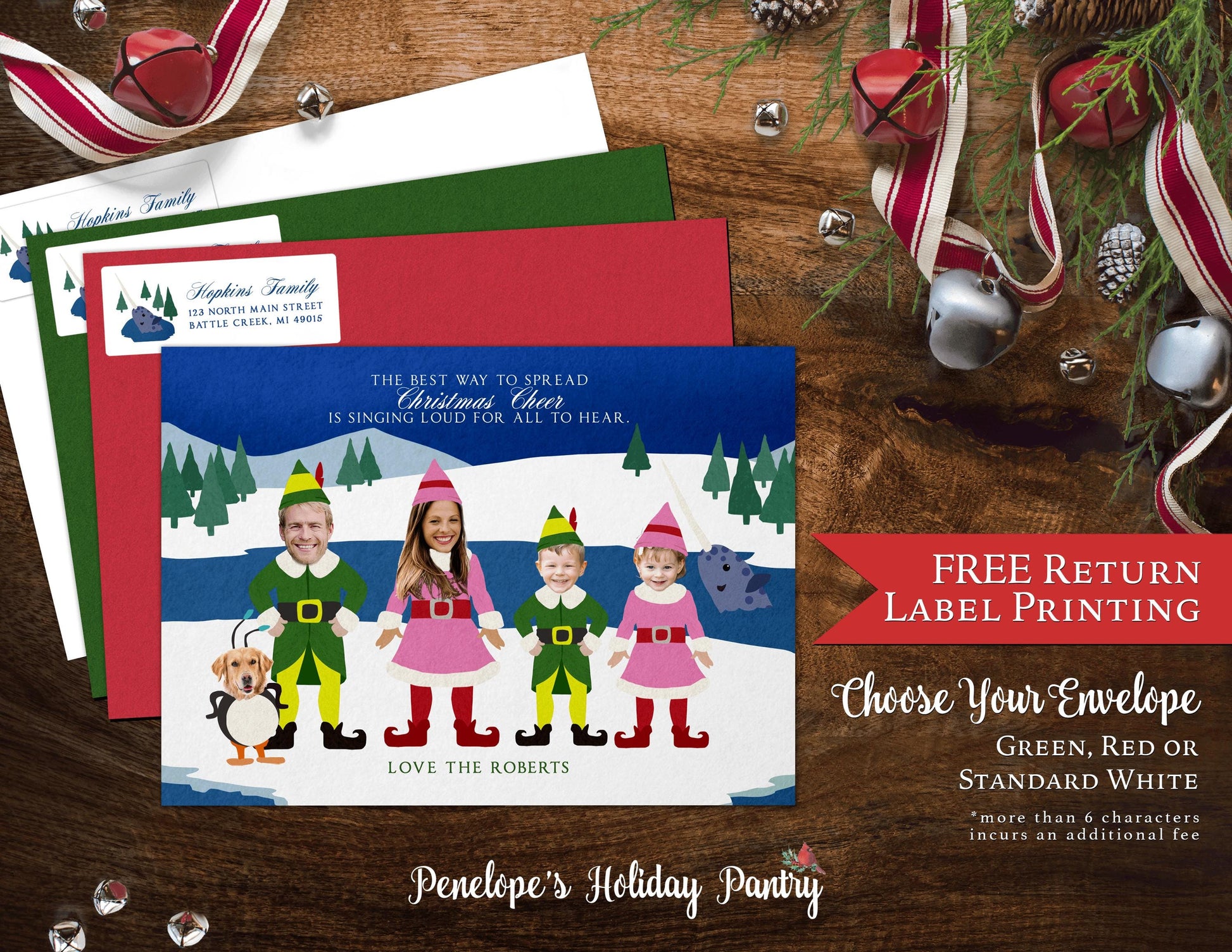 Funny Buddy The Elf Christmas Family Photo Card Personalized Narwhal Penguin Custom Text Printed Cards With Envelopes Return Address Labels