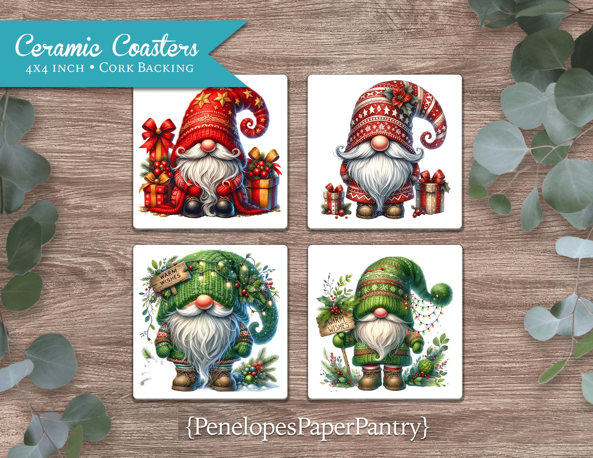 Funny Christmas Gnome Ceramic Coasters Set Of Four Christmas Decor Gift For Her Gift For Him Cork Back Unique Gift Stocking Stuffer 4 Inches