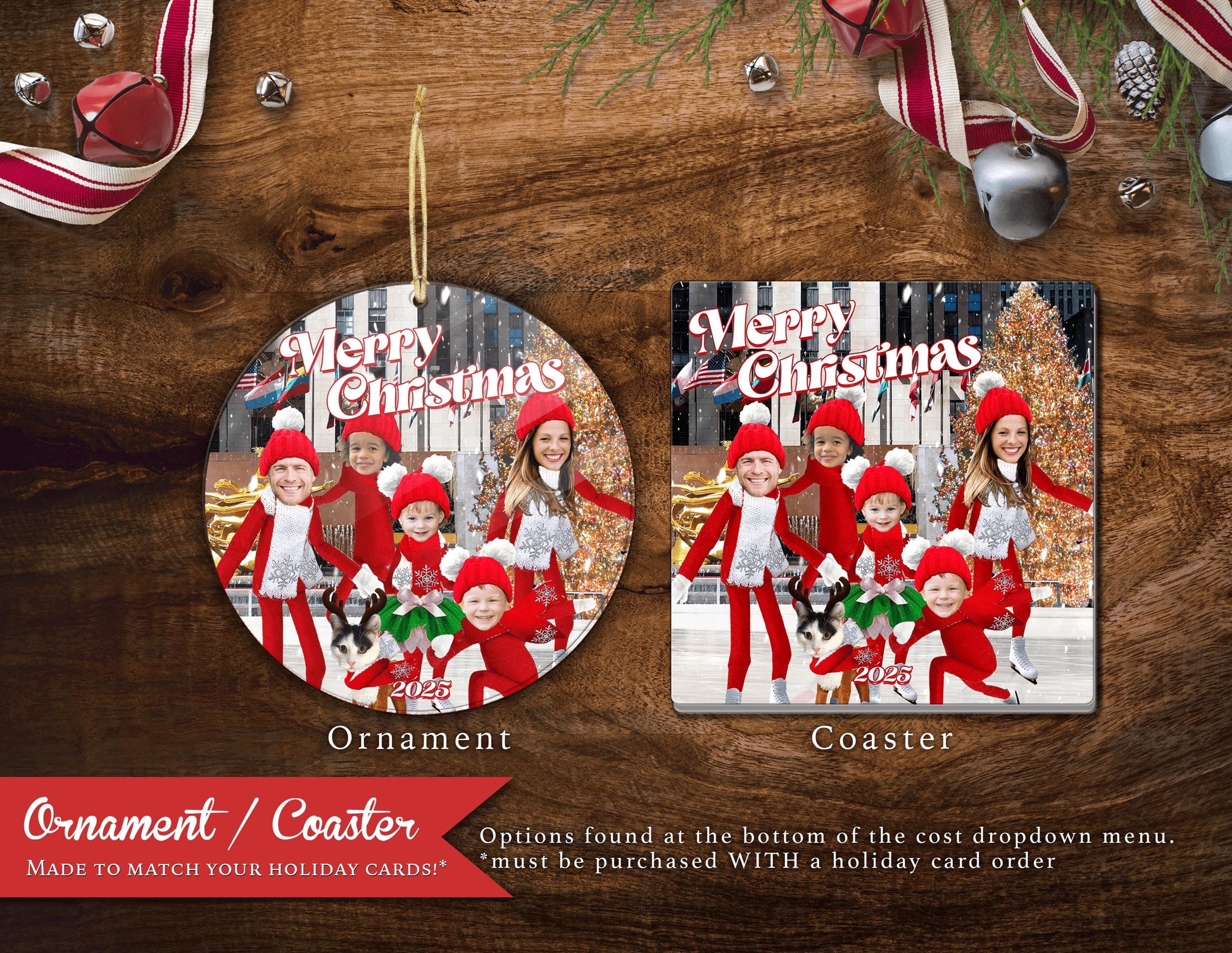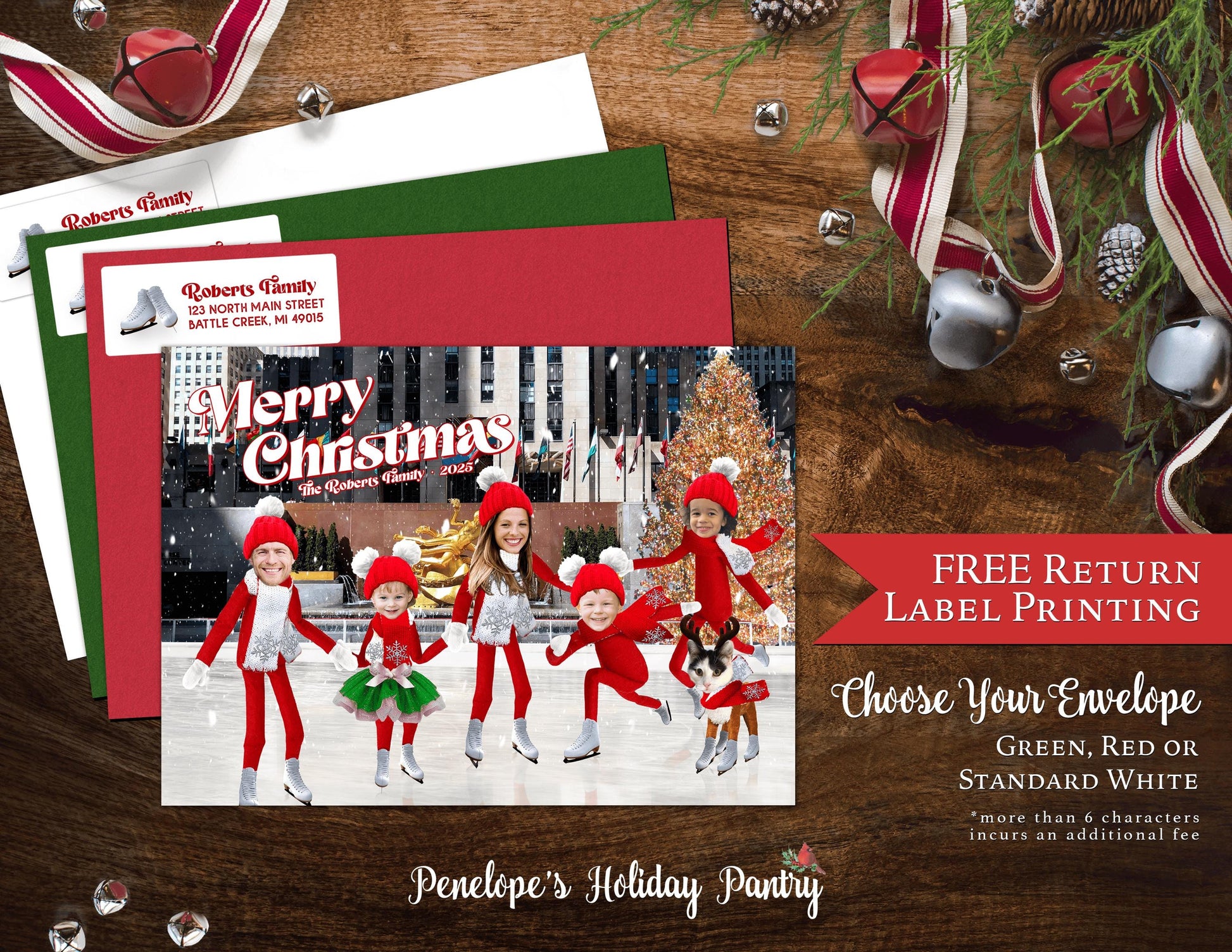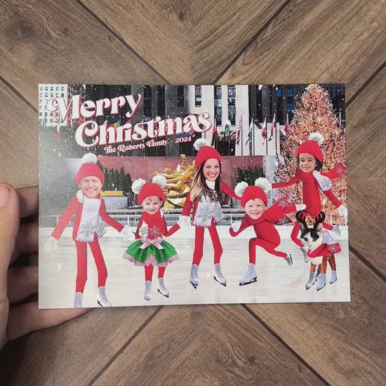 Funny Ice Skating Elves Christmas Photo Card | Personalized NYC Rockefeller Center Holiday Card