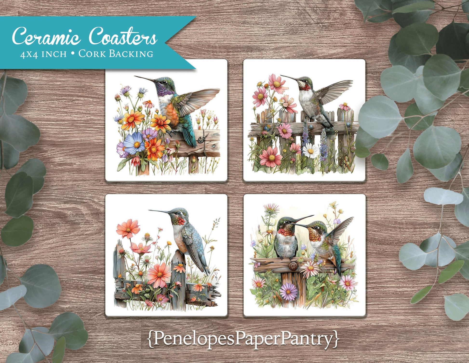 Hummingbird Set of 4 Ceramic Coasters with Cork Back