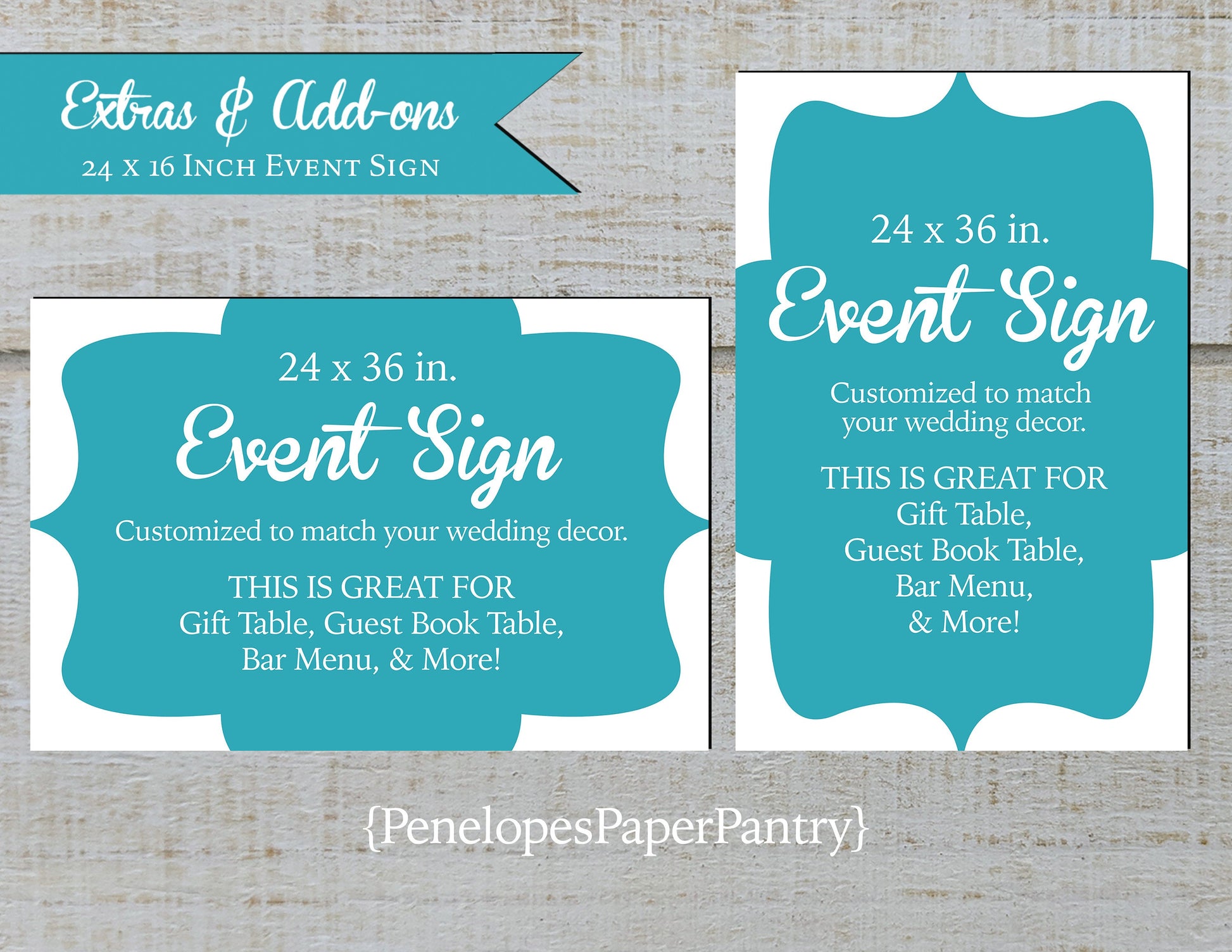 Penelope's Paper Pantry is proud to present our collection of Paper Event Signs!