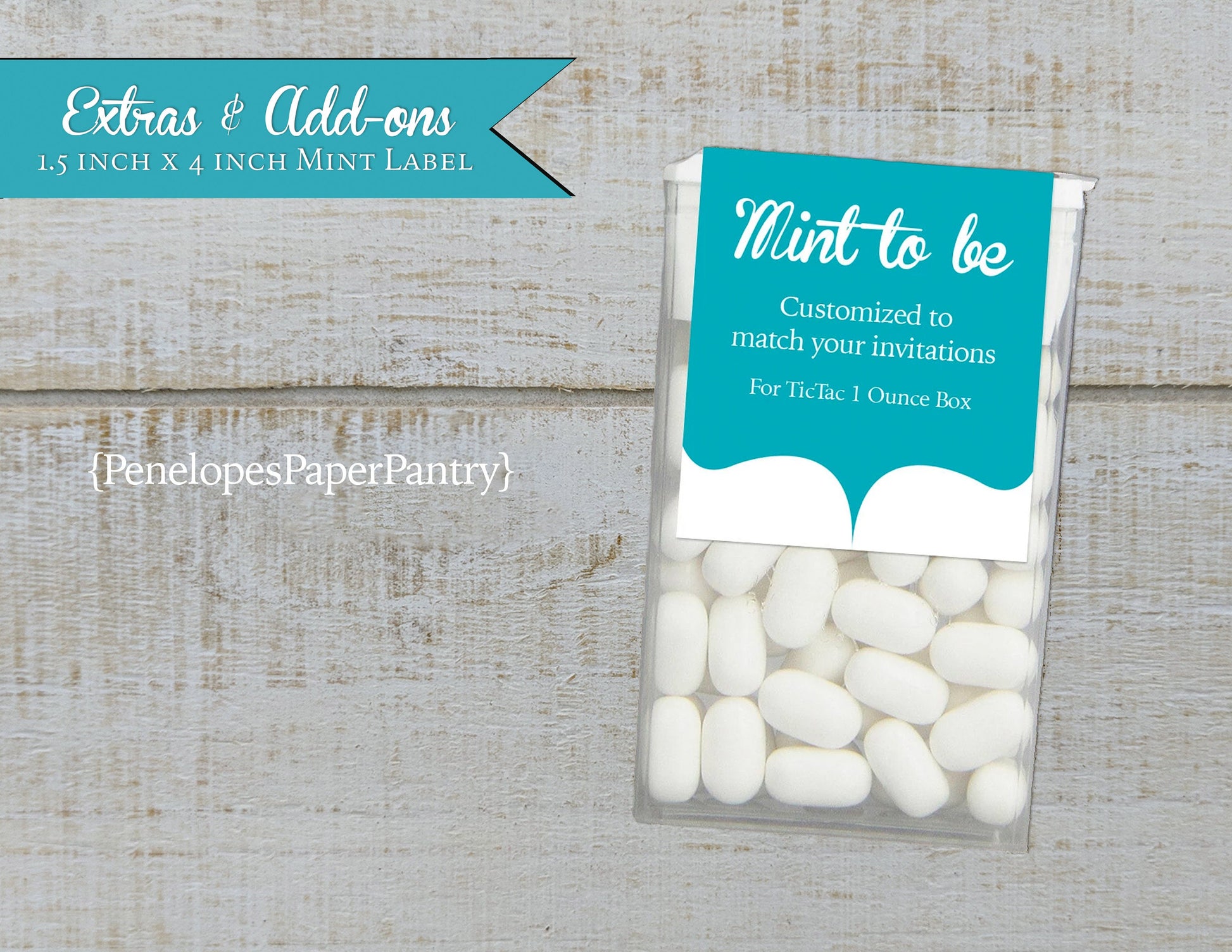 This listing is for custom candy stickers that fit Tic Tac candy boxes for wedding favors. They come pre-scored for easy opening.