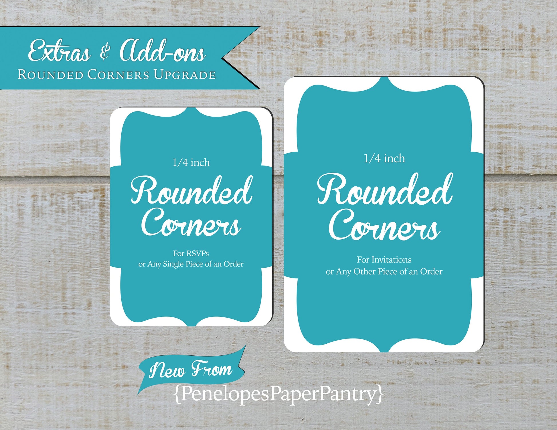 To purchase round corners please select the matching quantity to the invitations and/or invitation sets you have purchased.