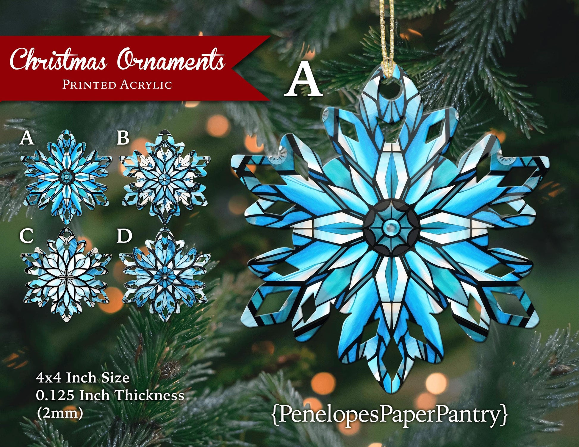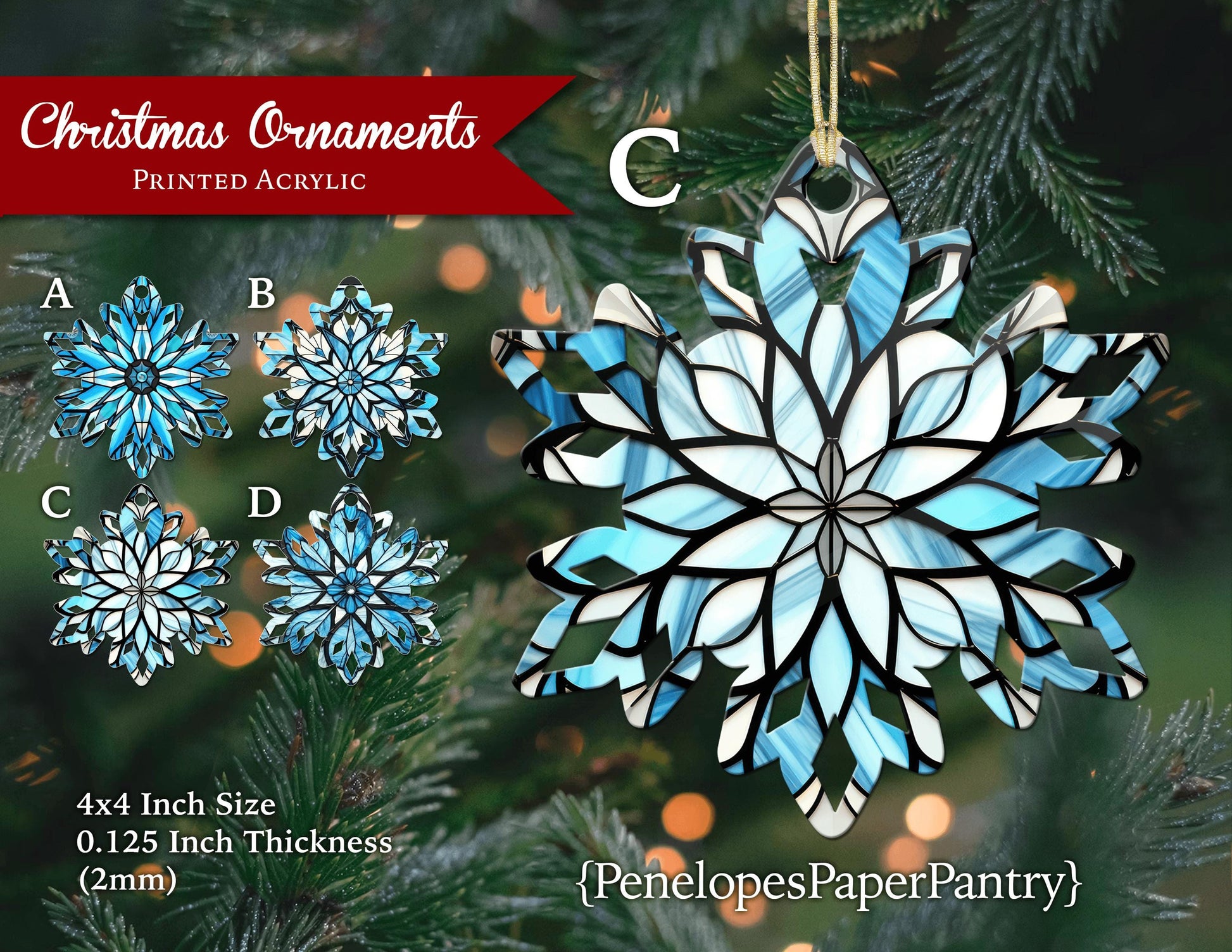 Unique Snowflake Christmas Tree Ornaments Faux Stained Glass Acrylic Four Designs Able To Personalize Gift For Her Gift For Him Keepsake