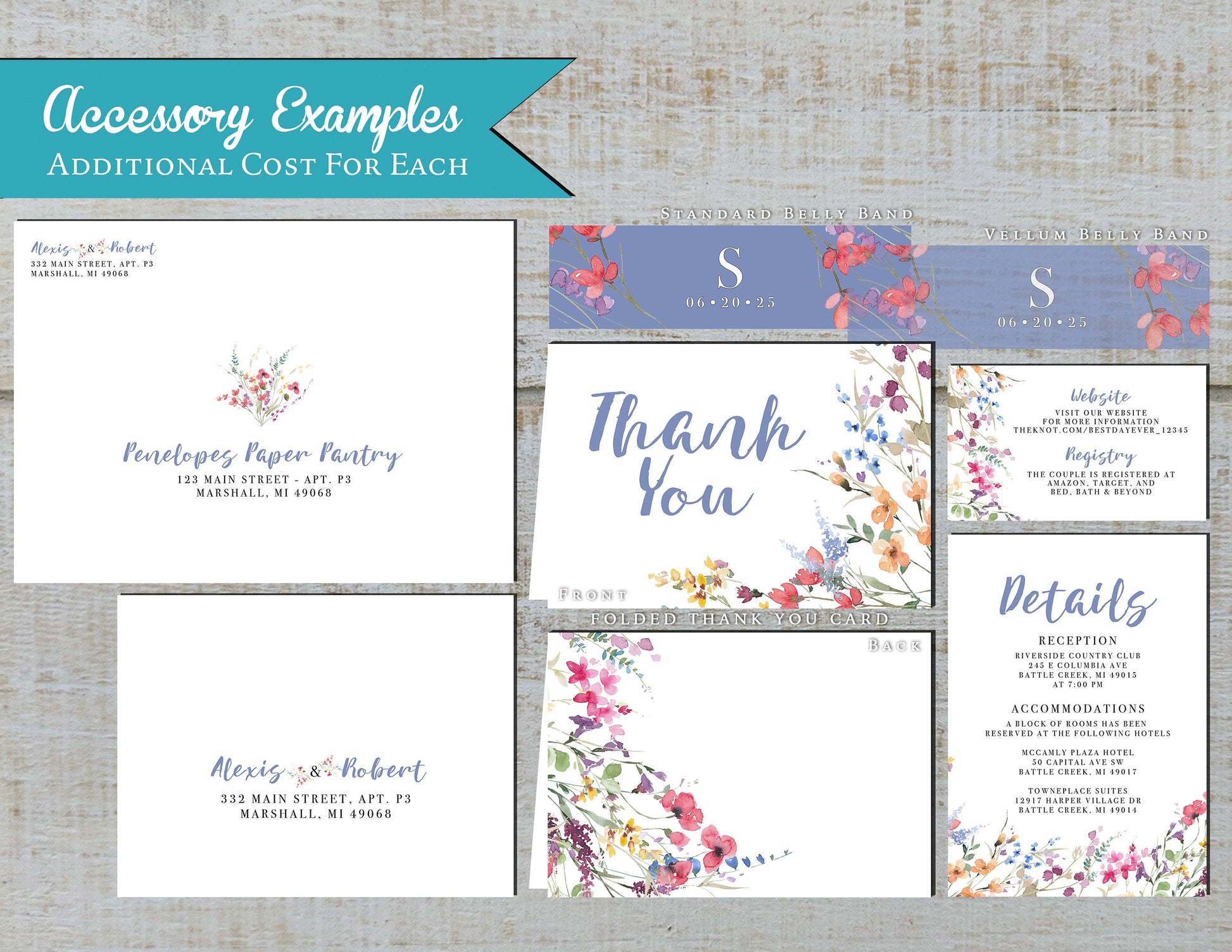 Whimsical Wildflower Summer Wedding Invitation,Summer Wedding Invite,Cornflower Blue,Calligraphy,Personalize,Printed Invitation,Envelope